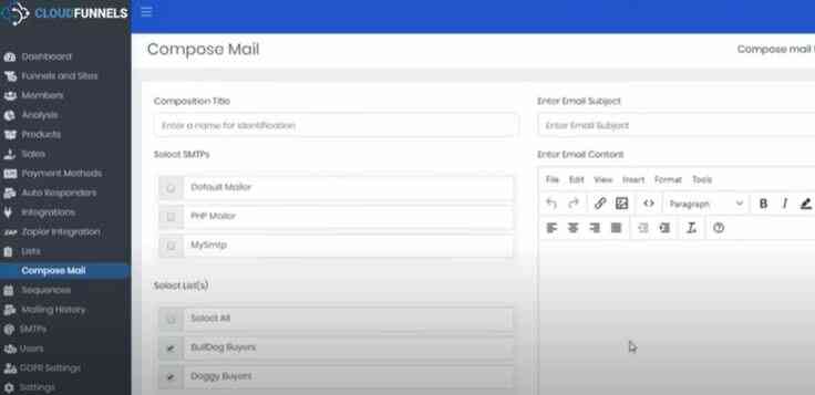 The email editor of Cloufunnels is intuitive and you can format and customize your email as you want. There is a mail report where you see the performance of the emails you sent.